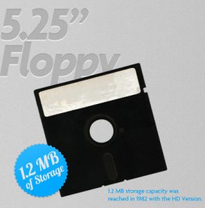 5.25” Floppy menjadi media penyimpanan pertama yang diproduksi secara masal. Selain untuk menyimpan data, floppy juga bisa digunakan untuk loading OS(Operating System).